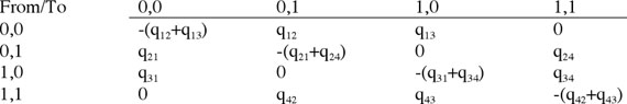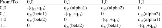 q12=q34, q21=q43, and q31=q42). Our four-parameter model specifies
